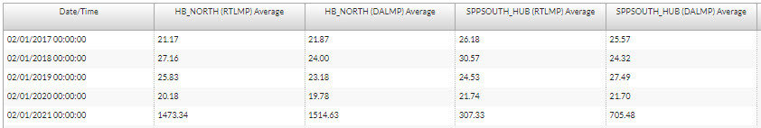 There are several types of business risk, one of which is external risk. External risks are risks that occur outside of the business that might negatively impact it. This includes politics, the economic environment, weather, and climate change. In February of this year, a cold snap affected a significant portion of the United States. The unusual weather led to volatility in power markets all over the country, but primarily the Southwest Power Pool (SPP) and the Electric Reliability Council of Texas (ERCOT). This is a good example of an external risk causing significant problems for organizations. During the February winter storm, some organizations made millions, while others went bankrupt. In the chart below, we compare the past five years of the monthly average on-peak real-time and day-ahead prices for February at ERCOT North Hub and SPP South Hub.